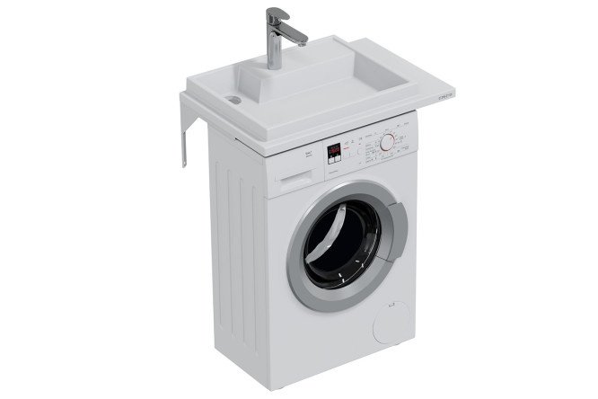 The wall-hung washbasin “Jupiter” is made of cast marble. The main advantage of installing a sink above the washing machine is saving space in a small bathroom.