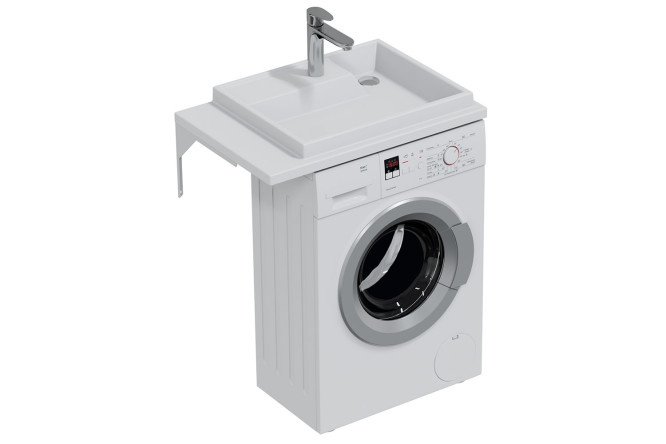 In our models, the cabinets are installed under the sink drain, and a washing machine can be placed under the wing. We also have a countertop sink option, where the cabinet is installed from the wing side. One such option is a countertop sink above the SaNta Jupiter 75 washing machine.