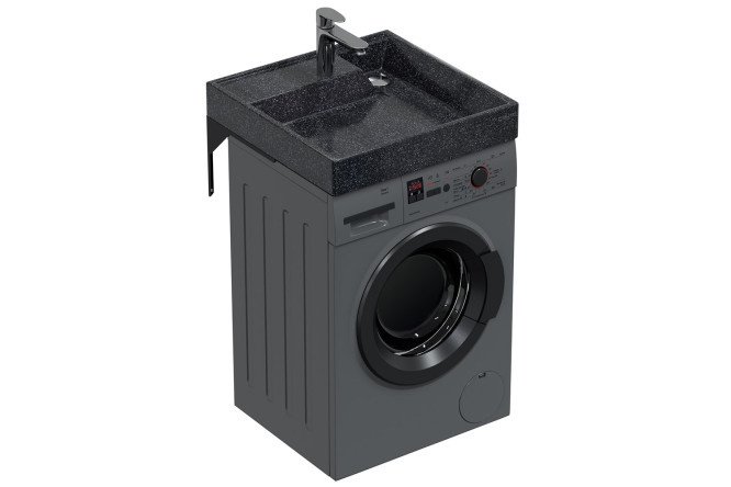 The black sink for the Santa Jupiter washing machine is made of cast marble. Installing a sink above the washing machine is important for small apartments. A huge plus is the absence of the need for additional communications. The water drain is located at the back of the washbasin; the location of the siphon does not interfere with the installation of the washing machine. The sink bowl has a rectangular shape. The wide back surface of the sink is convenient for placing hygiene items. The product is made using cast marble technology and covered with a high-quality decorative coating.