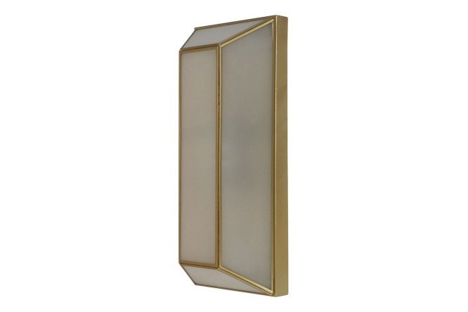 Wall lamp Politop is an original model in a laconic modern style. The lampshade of the product in the form of a rectangular truncated pyramid is made of mother-of-pearl glass with a golden metal edging. The lampshade gently diffuses the rays, providing lighting that is pleasant to the eye.