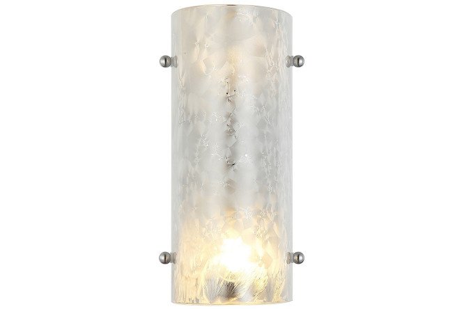 Wall lamp STILFORT Posher is an original model with an exclusive design. The base of the sconce is made of galvanized metal, the rounded shade is made of silver glass. The surface of the lampshade is decorated with hand painting, thanks to which the surface appears to be covered with frost. The rays passing through such a lampshade create an unusual play of light.