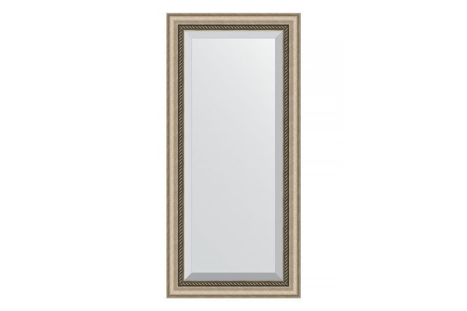 Wall mirror with bevel in a baguette frame EVOFORM antique silver with wickerwork 63×153 cm