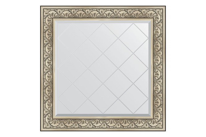 Wall mirror with engraving in a baguette frame EVOFORM baroque silver 110×110 cm