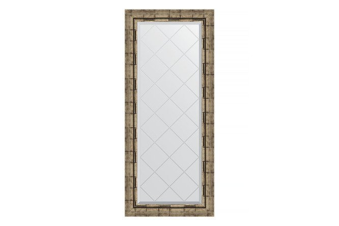 Wall mirror with engraving in a baguette frame EVOFORM Silver bamboo 73×153 cm