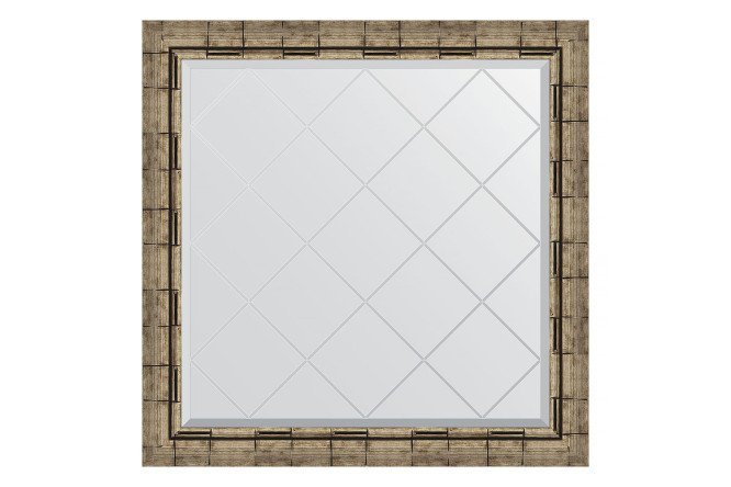 Wall mirror with engraving in a baguette frame EVOFORM Silver bamboo 103×103 cm