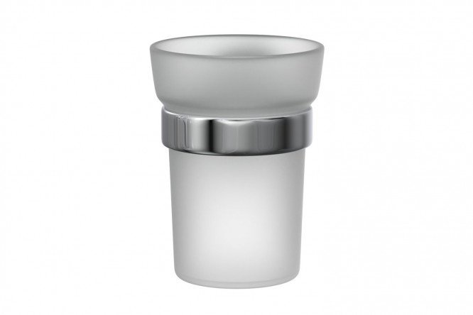 Wall-mounted toothbrush glass DROP FOR-DP044 made of glass, stainless steel in chrome color.