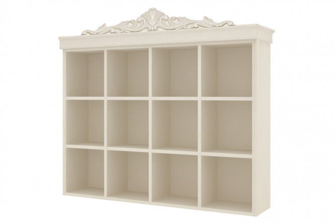 A wall shelf from the Marquis collection is an excellent solution for organizing space above a desk. The body of the mini-rack is made of high-quality laminated board. The product is attached to the wall using a hanger. The model consists of 12 open niches, ideal for placing books, toys and a variety of things that are convenient to keep at hand. Pilasters, cornices and an elegant crown of alabaster shade emphasize the sophistication of the product. The product is mounted as a wall hanging. It is strongly recommended that you additionally attach it to at least one adjacent cabinet. Violation of this rule may lead to accidents.
