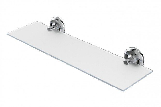 Wall shelf DROP FOR-DP034 made of glass, stainless steel in chrome color.