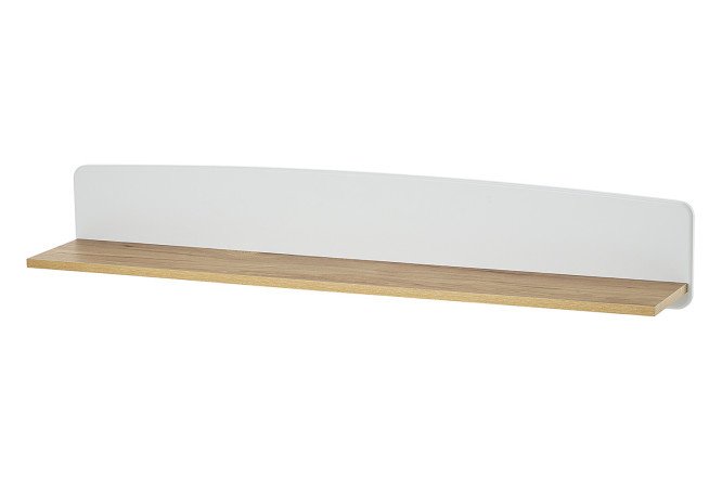 The Horten wall shelf will help visually tie together the elements of the furniture composition in the TV area of the living room. The design consists of the shelf itself and the back panel, which has rounded contours. The module can be used for arranging decorative items, collectible figurines, multi-frames with family photographs – taking into account that the total load on the surface should not exceed 2 kg. The product is equipped with fasteners: fittings for adjustment and threaded hooks.
