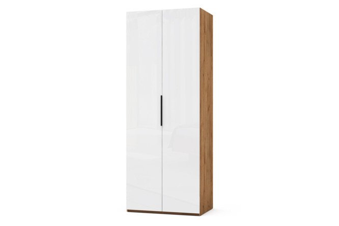 Internal filling of the cabinet: compartment for clothes with a rod and a shelf. Execution – in natural decor “Craft Golden Oak”, end profile handle (1 pc.) – black, made of durable plastic. Hinges with closers, which ensures smooth closing of the facades.