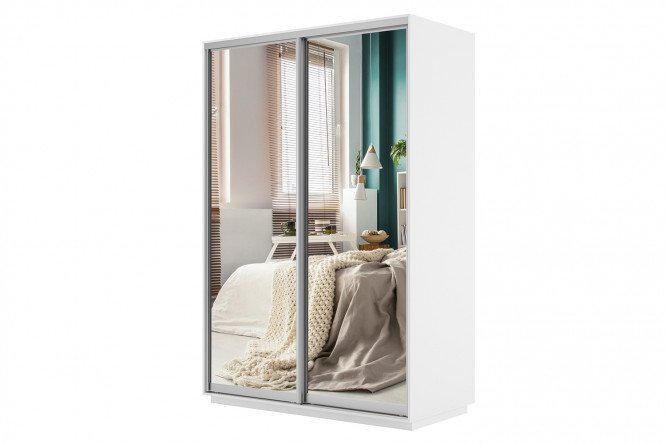 Wardrobe 2-door Slide 140x220x60 cm, white snow, with two mirrors