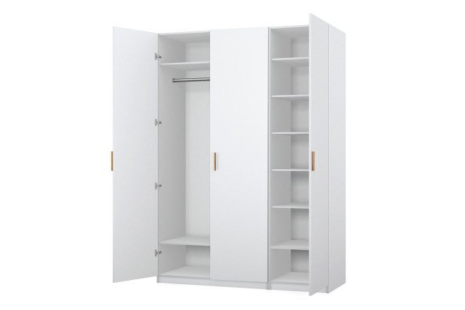 You can select and combine not only the internal contents, but also the external finishing options, which provides complete scope for creating a personalized design. Full-length mirrors, facades in white or wood decor, front fittings – the final say remains with the buyer.