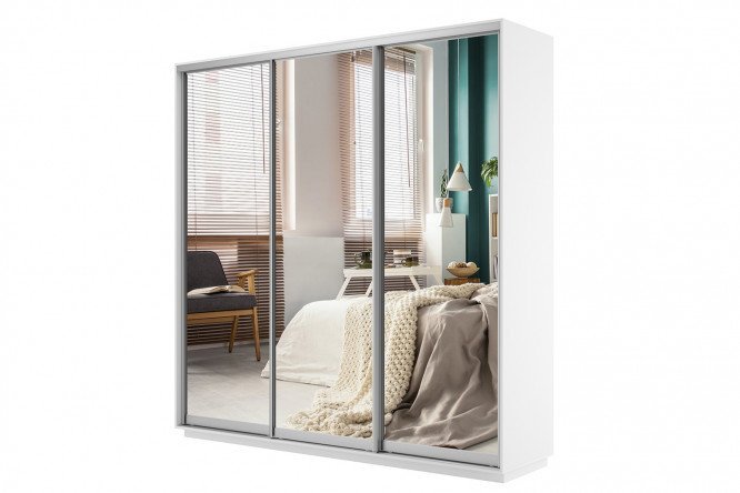 Wardrobe 3-door Slide 180x240x45 cm, white snow, with three mirrors