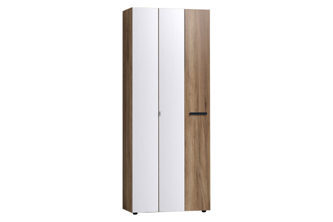 Wardrobe for clothes and linen Neo made of laminated chipboard, mirror in Craft tobacco oak color.