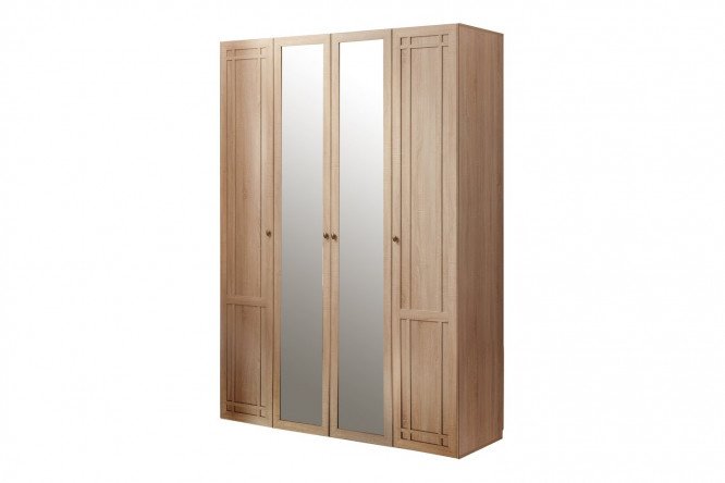 An elegant example of a modern classic, the Sherlock linen closet will complement a variety of interior styles. Strict framed facades and Sonoma oak color give it a refined and noble look. Central mirrored doors allow you to visually increase the size of the room. The internal space is organized in such a way that it is possible to place a variety of clothes and linen as conveniently as possible: in the central section of the closet, behind the mirrored doors, there is a two-level section with two rods for clothes; in the side sections of the closet there are 5 spacious shelves.