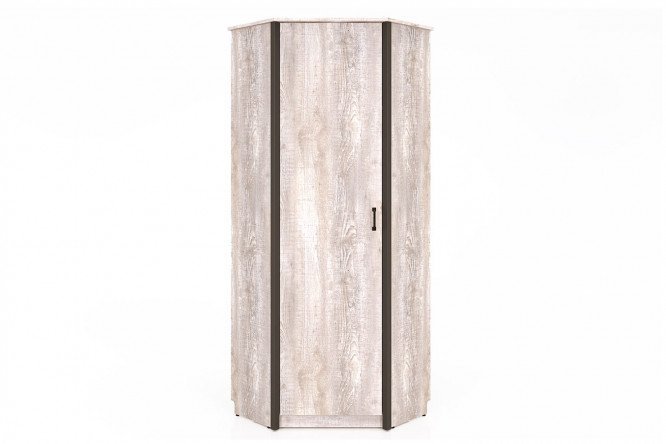 The Loft wardrobe is made in a modern style, perfect for a small hallway or area at the entrance to a studio apartment. The corner configuration of the model allows you to create a full-fledged wardrobe in a small area: the wardrobe will occupy a non-functional corner, leaving the center of the room and the space near the walls free. The main structural elements are made of laminated chipboard in the shade of concrete pine. The door is a hinged type, with a convenient handle-bracket. The internal filling includes shelves and a compartment with a rod.