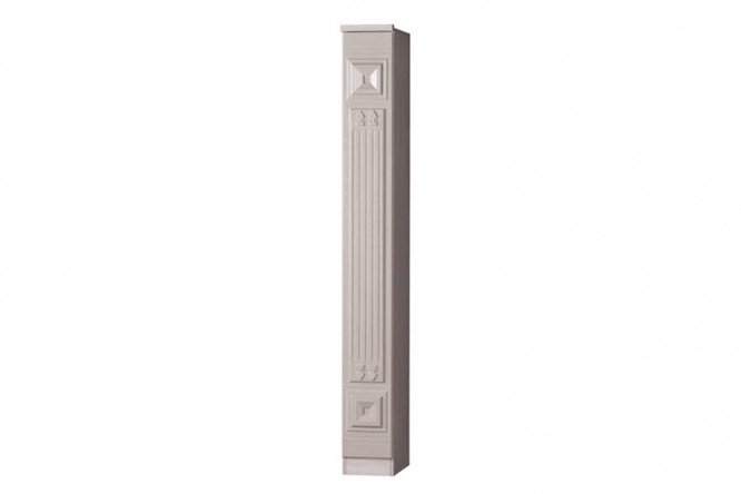 The narrow Lucia column cabinet, equipped with a push-to-open mechanism, opens with a light press on the door. The body of the product is made of chipboard in a fashionable “Oxford gray oak” decor, the facade is made of MDF in film with a patination effect. The ends are protected with PVC edges. Relief decorative elements, complex radius engraving, figured milling – these eye-catching details turn the model into a real work of art. Original German Hettich fittings were used in the manufacture of the cabinet.