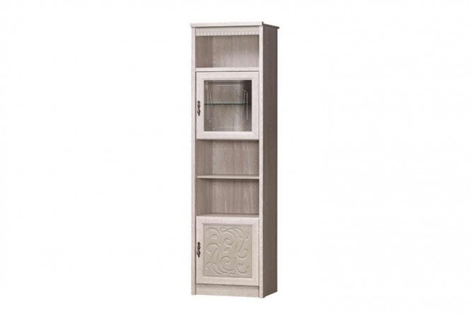 The Lucia multi-purpose wardrobe will look great in a classic setting. Its body is made of chipboard in a gray-beige Oxford oak wood decor, the doors are made of MDF with a protective film with a patina effect. The ends are finished with PVC edges. The upper façade with an insert of clear beveled glass is decorated with engraving, the lower one attracts attention with figured milling. Other undoubted advantages of the model include elegant Italian-made handles, stylized as aged silver, and reliable German Hettich fittings.
