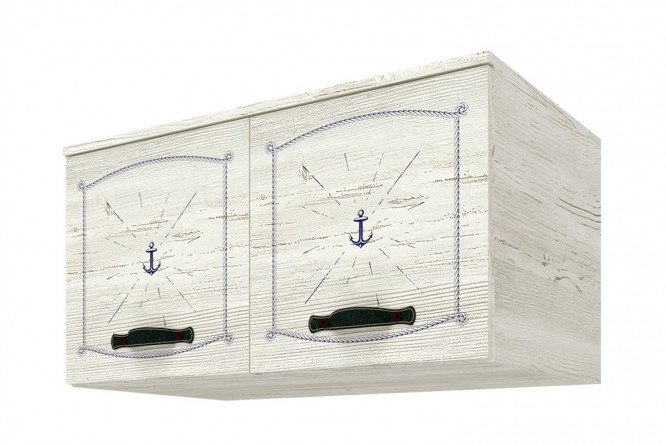 The Regatta mezzanine cabinet from the children’s furniture collection will allow you to effectively use the space under the ceiling without taking up floor space. The module is installed on a two-door wardrobe and fixed using self-tapping screws. On the mezzanine you can store things that are not in demand every day: a travel bag, replacement curtains, spare pillows for friends staying overnight. The furniture design is inspired by a marine theme: the light decor is reminiscent of the color of bleached canvas, the pattern is in blue tones.