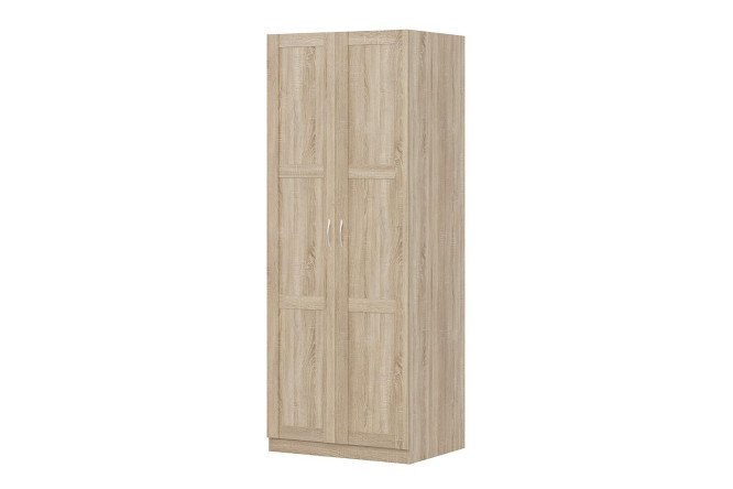 The Pegasus wardrobe is an excellent option for cabinet furniture for storing clothes. Decorated in a laconic, modern style, combining elegance and simplicity. Relief prefabricated MDF facades have an elegant appearance, accurately imitating an array of frames and panels. You can place a hinged two-door wardrobe in the hallway or bedroom. The classic design model consists of a spacious wardrobe compartment and a mezzanine shelf. On a standard horizontal bar you can simultaneously place hangers with outerwear, suits, blouses, and shirts. The shelf is convenient for storing hats and various accessories.