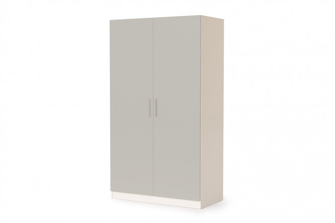 The Praktik hinged 2-door wardrobe will be a good solution for a modern bedroom or teenage room. It has a laconic design: without unnecessary details and decorations, with an emphasis on functionality. The highlight of the model is the smooth matte facade of the original shade of gray mother-of-pearl. The body and internal elements are made in neutral white. Metal railing handles are provided for convenient door opening. The interior space is divided into 2 main compartments: a clothes compartment with a barbell and a linen compartment with removable shelves, each of which can be installed in 3 different positions.