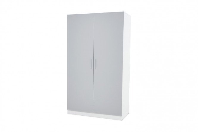 The Praktik hinged 2-door wardrobe will be a good solution for a modern bedroom or teenage room. It has a laconic design: without unnecessary details and decorations, with an emphasis on functionality. The highlight of the model is the smooth matte facade of the original shade of gray mother-of-pearl. The body and internal elements are made in neutral white. Metal railing handles are provided for convenient door opening. The interior space is divided into 2 main compartments: a clothes compartment with a barbell and a linen compartment with removable shelves, each of which can be installed in 3 different positions.