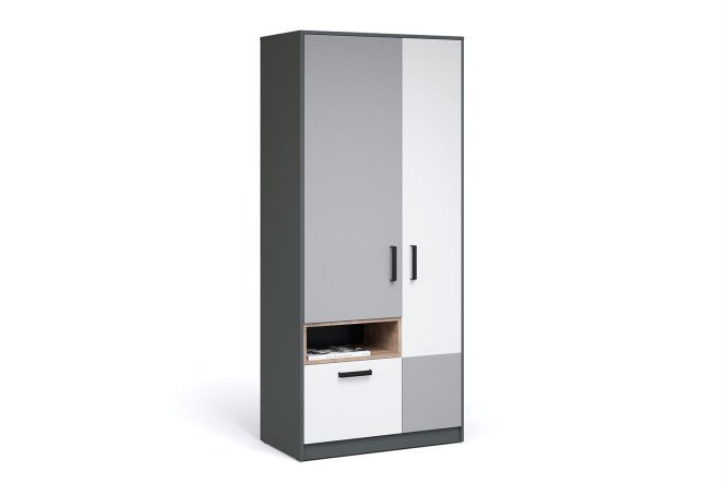 The Quadro wardrobe with its attractive, laconic design will fit perfectly into the interiors of a child’s or teenager’s room in a Scandinavian, loft or minimalist style. Combined facades in neutral colors create a harmonious atmosphere for the development of the child and set a positive mood. A thoughtful storage system helps keep all your clothes and toys in perfect order. The material of the body and facades is environmentally friendly and safe, meets international quality standards.