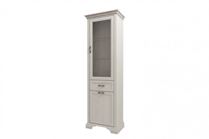 The Monako wardrobe is one of the modules of the living room furniture collection of the same name from the Belarusian company Anrex. The model, made in a classic style, will be appreciated by admirers of a harmonious, calm atmosphere. The exquisite combination of two light wood decors (body and plinth – Vintage Pine, milled cornice – Ancona Oak) makes the cabinet even more elegant. Frame facades made of MDF with a kracolet effect are complemented by elegant metal handles. A glass showcase will allow you to show off beautiful souvenirs, cups, and sets to guests at home and will reliably protect things from dust.