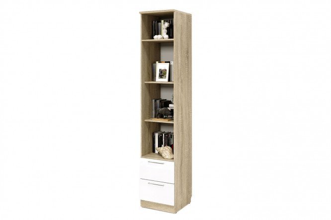 The Stockholm wardrobe with drawers is a piece of the collection of the same name, which was created for stylish and functional furnishing of a child’s or teenager’s room. Two drawers are ideal for storing things that need to be hidden from prying eyes, such as linens, accessories or clothes. On the four spacious open ones it is convenient to place books, photographs, souvenirs or organizers with household items. The combination of the body, the surface of which imitates Sonoma oak wood, and the white glossy fronts of the drawers looks impressive and makes the cabinet appropriate in any modern interior.