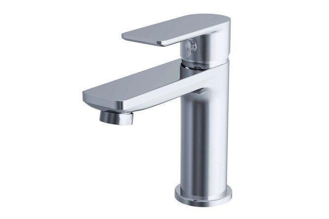 The compact MIXLINE washbasin mixer will complement the interior of a bathroom decorated in any modern style. The model harmoniously combines straight edges and surfaces with smooth curves. The water pressure and temperature are adjusted by turning the control lever. A small fixed spout directs the stream to the central area of the sink. The aerator at its end creates an even flow without splashing and reduces water consumption.