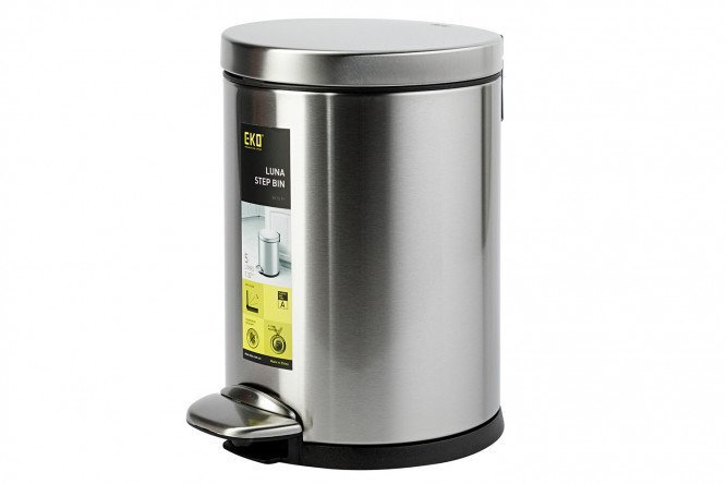 The ECO Luna pedal waste bin is an ergonomic container for collecting household waste. The container opens by lightly pressing the pedal with your foot: this is very convenient when both hands are busy and you don’t want to be distracted from the cooking process. The model is equipped with a soft close mechanism; when opened manually, the lid is locked in the folded position. The body is made of stainless steel, the internal removable container is made of plastic.
