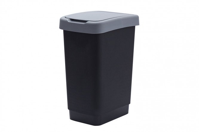 The Twin waste container is designed in a strict black and gray color scheme. The material for its manufacture was high-quality durable plastic. The design of the product is thought out to the smallest detail: the lid with a movable central part has two opening modes with fixation in a vertical position. Thanks to the tight fit of the lid, pets will not be able to stick their curious noses into the container and feast on what is not intended for them. The removable rim allows you to securely attach the garbage bag to the sides and then easily remove it along with the contents.
