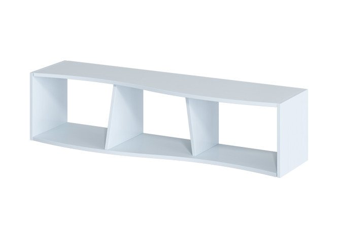 An unusual, eye-catching wall shelf evokes direct associations with the smooth movement of water: wave in English means “wave”, and the design of the model fully corresponds to the name. The dynamic effect is achieved through curved panels and inclined partitions; in three separate sections you can beautifully place a variety of things – books, souvenirs, photographs. The shelf is made of medium-thick laminated chipboard (16 mm), combines strength with relatively low weight, and is easily supported by two hidden fasteners. The model looks best in modern interiors, but is also quite suitable for ethnic style – for example, Mediterranean.