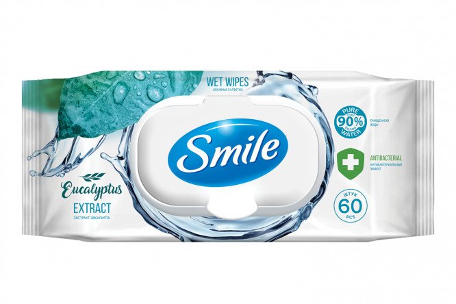 Wet wipes with antibacterial effect, 60 pcs per pack.