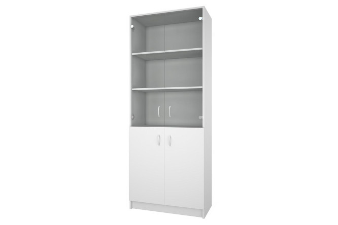 The combination of open and closed niches will allow you to correctly arrange the necessary items. The stylish module with glass will easily fit into a modern interior. The rack will be a practical addition to the room’s storage system.